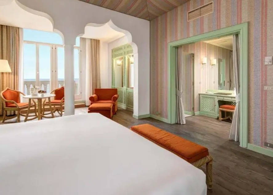 Rooms are impressively spacious, featuring modern comforts like flatscreen TVs, air conditioning, free Wi-Fi, and minibars. Gaze out over the shimmering Adriatic, the rooftops of Venice, or the tranquil Moorish courtyard from your window. Each room comes with a private bathroom, plush bathrobes, and slippers for that extra touch of indulgence.